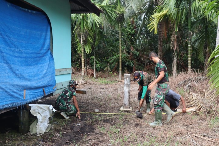 Indragirione.com, - Kegiatan Tambahan Karya Bhakti di Desa Terusan Bringin jaya Letda Inf. M.Prabudi yang merupakan Danton Satgas TMMD Ke - 111 bersama Kepala desa Terusan Beringin Jaya Bapak Abdullah Meninjau lokasi Rehab Mushollah Baitulah Rahman di Dusun Teluk Kundur Nomor 1 Desa Terusan Beringin jaya Sabtu (19/06/2021)