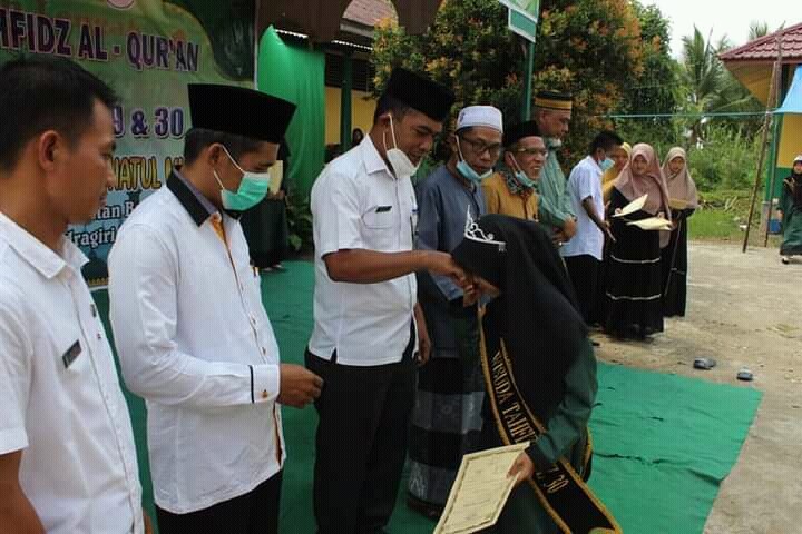 Indragirione. Com - Rumah Tahfidz Raudhatul Muslimin desa Gemilang Jaya Wisudakan pertama kali Santri dan Santriwati, Prosesi wisuda Tahfidz Raudhatul Muslimin tahun 2021 ini diikuti oleh 34 wisudawan dan wisudawati, yang digelar di pendopo Yayasan Nurul Huda dengan tetap memperhatikan protokol kesehatan di masa pandemi Covid-19, Kamis (8/7).