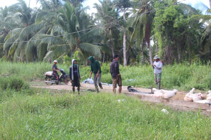 Indragiri Hilir, - Proses demi proses, hari demi hari Satgas TMMD ke 111 Kodim 0314/lnhil berjuang sampai hari ini untuk membangun Desa bersama masyarakat di sasaran fisik semenisasi jalan penghubung Desa Terusan Beringin Jaya dengan Desa Teluk Bunian.