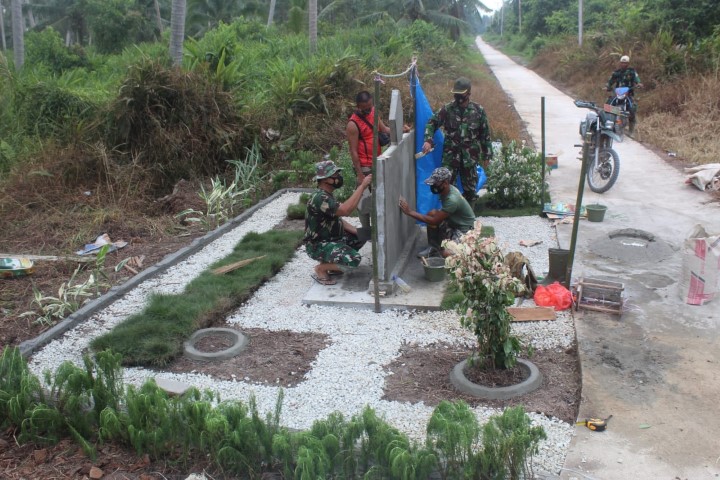 Indragirione.com, - Semakin dekatnya acara penutupan TMMD ke 111 Kodim 0314/lnhil, Satgas TMMD bersama masyarakat terus kebut pembuatan Tugu TMMD yang terletak di perbatasan Desa Terusan Beringin Jaya dengan Desa Teluk Bunian Kecamatan Pelangiran Kabupaten lnhil. Rabu, (07/07/2021).