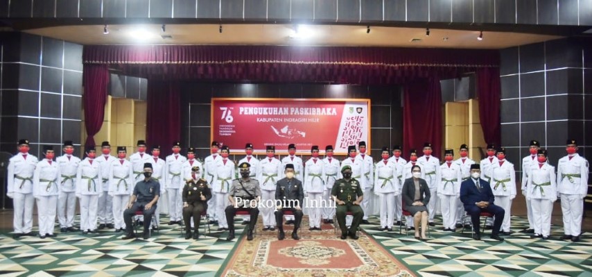 Tembilahan - Sebanyak 30 orang Pengibar Bendera Pusaka (Paskibraka) Kabupaten Indragiri Hilir (Inhil) telah dikukuhkan secara resmi, Senin (16/8/2021) sore.
