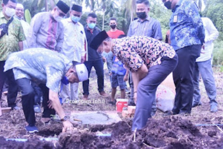 INHIL,- Wakil Bupati Inhil H.Syamsuddin Uti melakukan peletakan batu pertama pembangunan asrama santri Ponpes Miftahul Hidayah yang berlokasi Lorong Beringin Jl.Sungai Beringin Kelurahan Sungai Beringin Kecamatan Tembilahan, Rabu (11/8/2021).