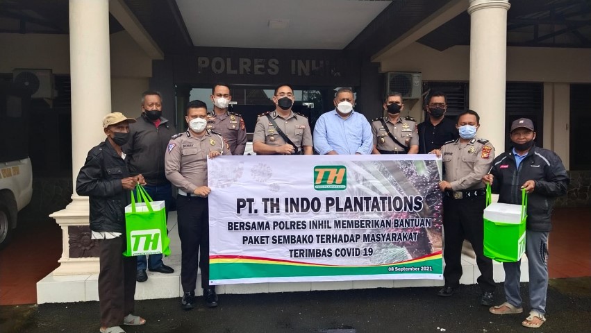 INHIL,- PT. TH Indo Plantation (THIP) dan Polres Inhil kembali salurkan bantuan paket sembako kepada masyarakat terdampak Covid-19, di Kabupaten Inhil.