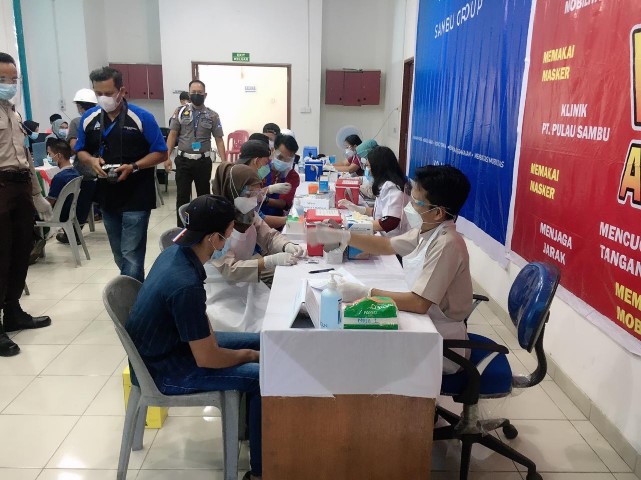 “Sedangkan vaksinasi gotong royong di PT. Pulau Sambu di Guntung dosis pertama untuk 2000 orang tenaga kerja sudah diselesaikan pada tanggal 31 Agustus 2021 yang lalu, untuk vaksinasi dosis kedua direncanakan mulai tanggal 21 September 2021 yang akan datang” lanjut Ahlim Ginting