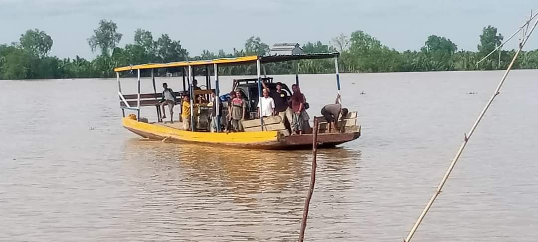 Maka dari itu, dengan menggunakan ponton kayu, sejenis alat transportasi sungai yang umumnya berfungsi mengangkut orang dan sepeda motor. Kendaraan roda 4 seperti L300 dan mobil pribadi lainnya lebih memilih menyeberangi sungai yang luasnya kurang lebih 500 meter.