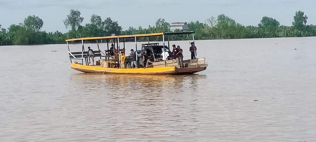 Jembatan Putus, Mobil Akhirnya Menyeberangi Sungai Pakai Ponton ke Pulau Kijang