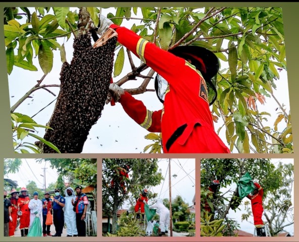 “Yang punya rumah khawatir sarang lebahnya takut bahayain orang. Lebahnya bisa nyengat tapi sebenarnya enggak bahaya,Evakuasi sarang lebah sempat mengalami kesulitan lantaran jauhnya posisi sarang lebah dari jangkauan petugas kebakaran, namun Alhamdulillah dapat di selesaikan.