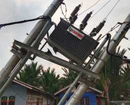 Ponton Tabrak Kabel, 2 Travo dan 5 Tiang Listrik di Desa Tanjung Simpang Tumbang