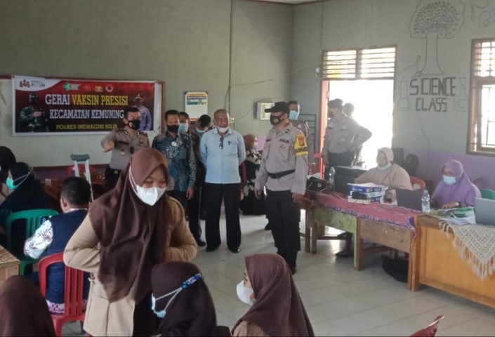 INHIL,- Sebanyak 400 pelajar di SMA Negeri Kemuning, kecamatan Kemuning, mengikuti vaksinasi tahap I Gerai Vaksin Presisi Polsek Kemuning, Polres Indragiri Hilir, Kamis (14/10/2021).