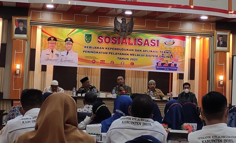 INHIL,- Dinas Kependudukan dan Pencatatan Sipil (Disdukpencapil) Kabupaten Indragiri Hilir (Inhil) menggelar Sosialisasi Kebijakan Kependudukan dan Aplikasi Teknis Peningkatan Pelayanan Melalui Sistem Online tahun 2021, Sabtu (6/10/2021) siang.
