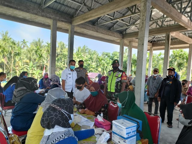 Vaksinasi kepada masyarakat di Desa Pekan Kamis, Kecamatan Tembilahan Hulu, pada Rabu (8/12) dilaksanakan di Aula Kantor Desa, dengan dihadiri langsung Camat Tembilahan Hulu Ridwan dan Kapolsek Tembilahan Hulu AKP Sandy Humisar Sibarani dan Bhabinsa setempat.