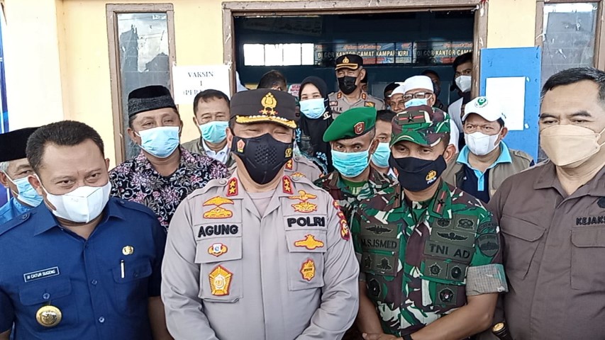 Kapolda Riau, Irjen Pol Agung Setya Imam Effendi SH SIK MSi dalam pidatonya menyampaikan apresiasi atas terlaksana kegiatan vaksinasi Covid 19 dengan kondusif dan mencapai target yang luar biasa di Kabupaten Kampar, khususnya di Kampar Kiri yang sedang berlangsung seiring sambutannya.
