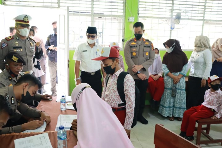 Kapolres Inhil Tinjau Pelaksanaan Vaksin Anak di SDN 003 Tembilahan
