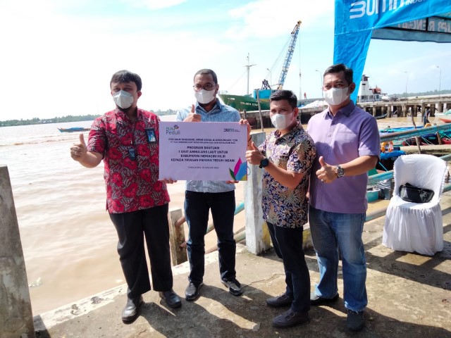 Tembilahan- Bertempat di Pelabuhan Baruna Tembilahan Kamis 20/01/2022 Manajer PT PLN (Persero) UP3 Rengat Beny Indra Praja bersama Ketua Komisi III DPRD Kabupaten Indragiri Hilir Iwan Taruna, ST, M.Si menyerahkan bantuan satu unit ambulans laut kepada Yayasan Payung Teduh Insani (YPTI) yang diterima langsung oleh Tata Maulana selaku Wakil dari YPTI.