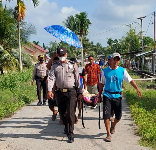 "Dengan alat seadanya kayu dan kain sarung wanita tersebut pun dibawa dari rumah menuju pelabuhan untuk dinaikkan ke dalam speed boat. Satu orang petugas kepolisian berpangkat Aipda ikut serta mendampinginya ke rumah sakit,"ujar Akp Fadly