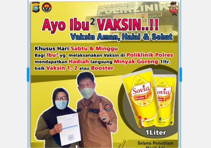 Ibu-Ibu, Vaksin di Klinik Polres Inhil Hari Sabtu-Minggu Dapat Minyak Goreng Gratis