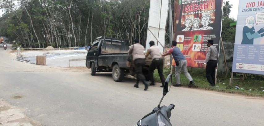 Melihat adanya kendaraan warga yang mogok tersebut, Iptu Asril bersama sejumlah personil Polsek Kuantan Hilir langsung mendatangi dan membantu warga tersebut.