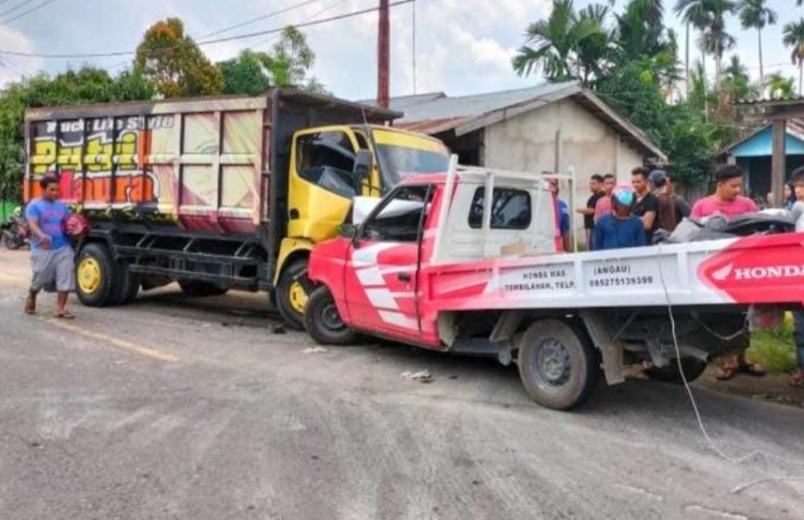 Mobil Fuso dan Pick Up Pengangkut Sepeda Motor Honda Tabrakan di Rumbai Jaya