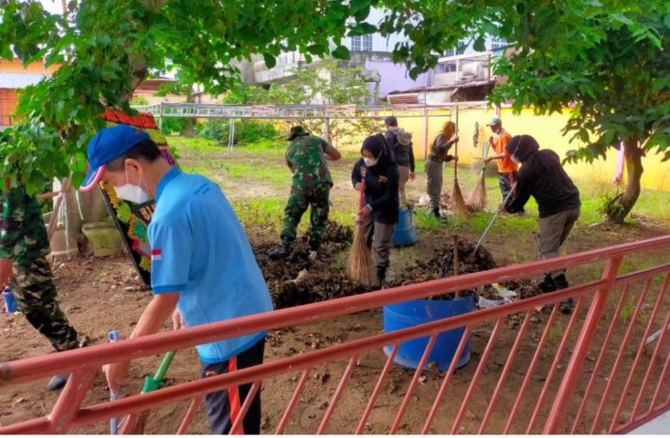Kerja bakti dan gotong royong dilakukan pada tiga titik lokasi dengan prioritas pembersihan tempat-tempat ibadah yaitu, Mesjid Raudhatul Jannah Jalan Kayu Jati, Surau At-Thoyyibah Jalan H. Arif, Vihara Budi Bhakti Jalan Ahmad Yani Tembilahan Hulu.
