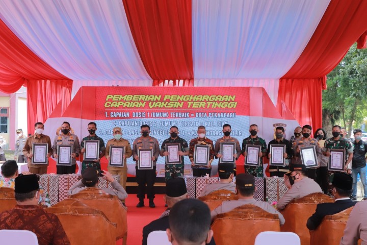 Selain Kabupaten Inhil yang mencapai penghargaan vaksinasi dalam kategori Lansia, Kota Pekanbaru turut meraih penghargaan dalam kategori dosis 1 (umum) terbaik, Kabupaten Siak dalam kategori capaian dosis 2 (umum) terbaik dan Kabupaten Kuansing dalam kategori anak- anak tertinggi.