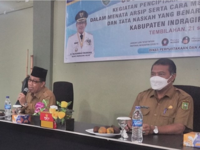 Ramli Arsyad yang merupakan Arsiparis Madya Dipersip Provinsi Riau menjelaskan materi tentang Pengantar Kearsipan sesuai dengan Peraturan Bupati (Perbup) Nomor 19 Tahun 2010, yang menjadi acuan membuat surat menyurat di lingkunyan Pemkab Inhil.
