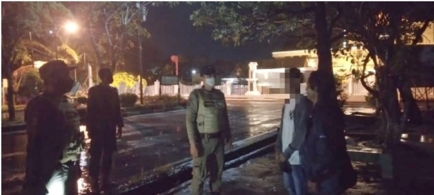 Setelah penelusuran dilakukan kebeberapa titik kota, tim kembali ke Mabes Satpol PP untuk standby. Tampak masyarakat yang sedang berteduh di Ruang Terbuka Hijau (RTH) Hutan Kota dalam keadaan gerimis. Karena wilayah juga dalam keadaan sepi dan minim penerangan, dua orang pria tersebut diberikan saran oleh Tim URC untuk berteduh di kantor sambil menunggu hujan reda. Selain itu, keduanya juga diberikan himbauan untuk tidak mengabaikan prokes.