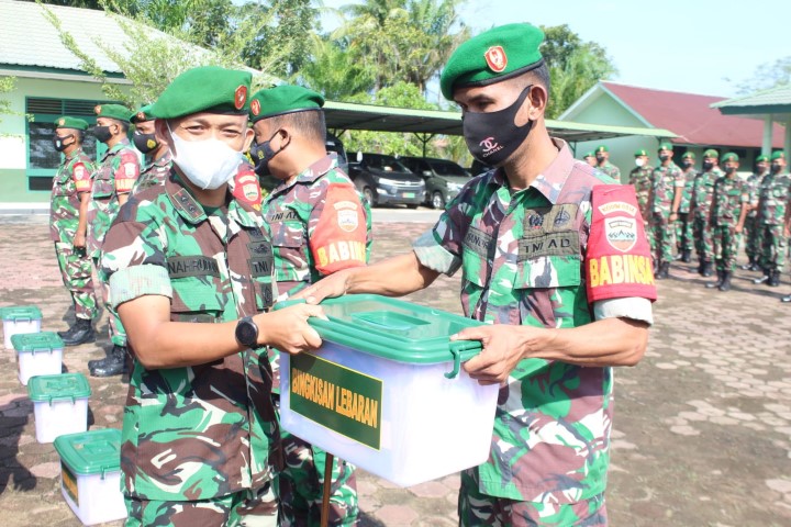 Karena memang judulnya juga adalah bingkisan untuk Koramil terluar dan perbatasan. Jadi tidak semuanya prajurit berhak mendapatkan bingkisan ini. "Dan Alhamdulillah Kodim kita mendapatkan sebanyak 65 bingkisan, dan sudah kita tentukan Koramil mana saja yang berhak dan layak untuk mendapatkan bingkisan ini," ungkap Dandim Letkol Arh M Nahruddin Roshid yang.
