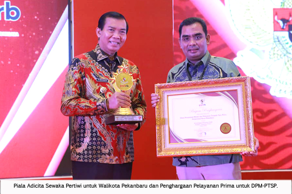 Selain DPM-PTSP, kesuksesan MPP Pekanbaru juga membuat Kemenpan RB memberikan penghargaan Piala Adicita Sewaka Pertiwi atau Pembina Pelayanan Publik Terbaik kepada Walikota Pekanbaru, Dr H Firdaus ST MT.