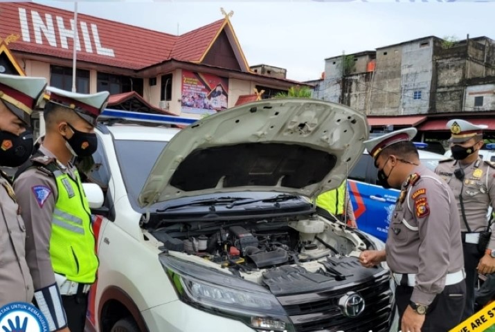 Tampak dilapangan Mapolres Inhil berbagai kelengkapan perorangan dan kendaraan bermotor (Ranmor) dinas yang akan beroperasi dan digunakan oleh Tim Pengurai Kemacetan Sat Lantas Polres Inhil dilakukan pengecekan satu persatu.