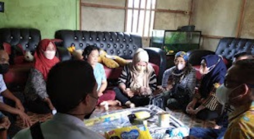 Kepala Dinas Sosial, Dra Hj Djamilah, MM didampingi Kabid Rehabilitasi Sosial, Nuraini dan rombongan memastikan langsung kondisi sang anak turut mensyerahkan bantuan beruapa uang biaya transportasi rujukan bagi pasien serta perlengkapan kebutuhan Adam.
