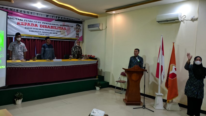 Dalam rangka memberikan pemahaman kepemiluan kepada penyandang Disabilitas yang mempunyai hak pilih baik dalam Pemilu maupun Pemilihan tahun 2024 nanti, Badan Pengawas Pemilihan Umum (Bawaslu) Kabupaten Indragiri Hilir menggelar kegiatan Fasilitasi Penguatan Pemahaman Kepemiluan kepada Disabilitas di Aula Hotel Grand Tembilahan, Selasa (2/6/2022).