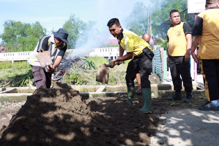 Polres Inhil dan Warga Asrama Polisi Tembilahan Hulu Gotong Royong