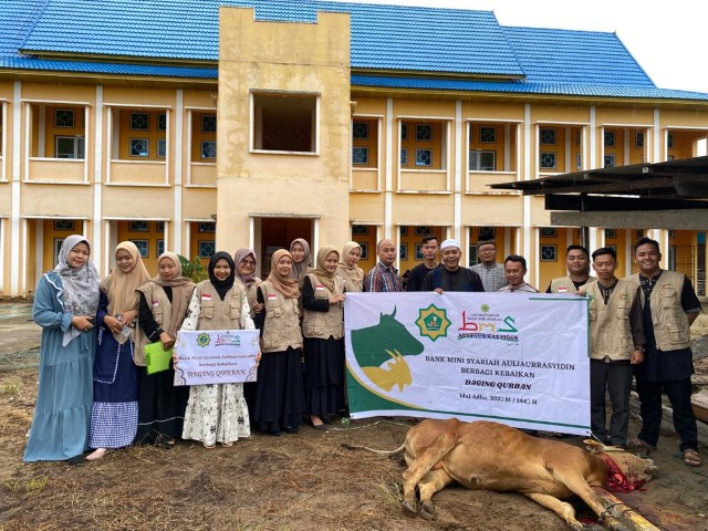 Tembilahan, 12 Juli 2022, - Bank Mini Syariah (BMS) STAI Auliaurrasyidin Tembilahan berbagi kebaikan daging kurban. Kegiatan ini dilaksanakan di areal kampus STAI Auliaurrasyidin Tembilahan.