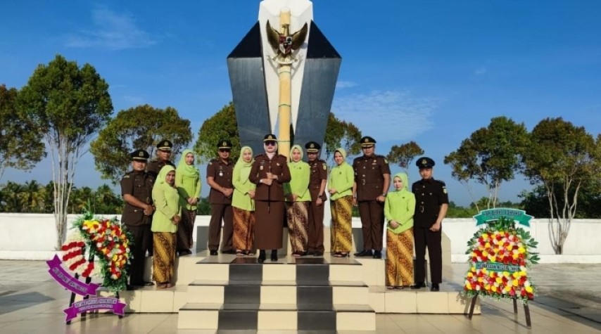 Upacara dan tabur bunga di Taman Makam Pahlawan tersebut secara langsung dipimpin Kajari Inhil Rini Triningsih SH MHum dan diikuti seluruh pejabat dan pegawai di lingkungan Kejari Inhil serta ibu-ibu Dharmakarini.