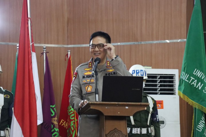 Orasi ilmiah Kapolda Riau ini, mengambil tema besar soal membangun stabilitas keamanan di Bumi Lancang Kuning, dengan konsep pemolisian yang presisi.