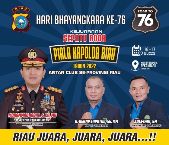 PEKANBARU - Kepolisian Daerah (Polda) Riau bersama Perserosi Riau bakal menggelar kejuaraan pada Sabtu dan Minggu, 16-17 Juli 2022 mendatang. Kejuaraan yang bakal diikuti oleh seluruh klub sepatu roda se Provinsi Riau ini memperebutkan Piala Kapolda Riau, Irjen Pol Mohammad Iqbal.