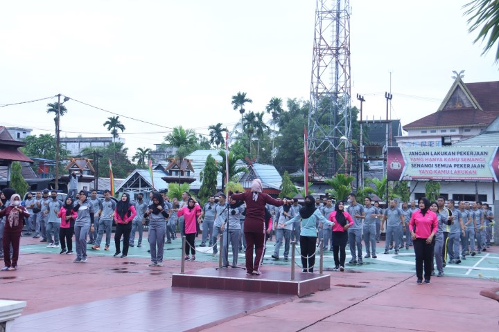 Sambut Hari Jadi Polwan ke-74 Polres Inhil Gelar Olahraga Senam Bersama