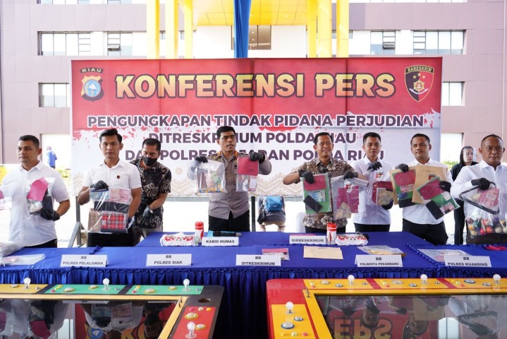 "Ini bentuk komitmen Polda Riau dan seluruh jajaran hingga di Polres, bahwa tidak ada tempat dan ruang untuk semua bentuk perjudian. Kapolda Riau Irjen Iqbal menegaskan seluruh jajaran agar atensi terhadap masalah kasus judi ini," tegas Kabid Humas Kombes Sunarto dalam jumpa persnya Jumat (19/8/2022), didampingi Direktur Reskrimum Kombes Asep Darmawan dan para Kasat Reskrim jajaran Polda Riau.