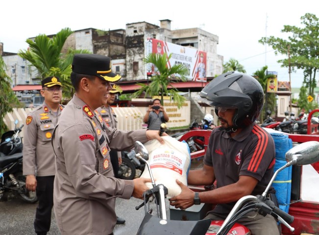 Polda Riau Bagikan Sembako Dampak Kenaikan BBM, Polres Inhil Sebanyak 150 Paket