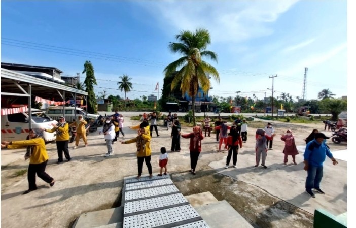 Kegiatan senam Prolanis bagi peserta JKN dilaksanakan di halaman UPT Puskesmas Kotabaru, Kecamatan Keritang, Kabupaten Inhil.