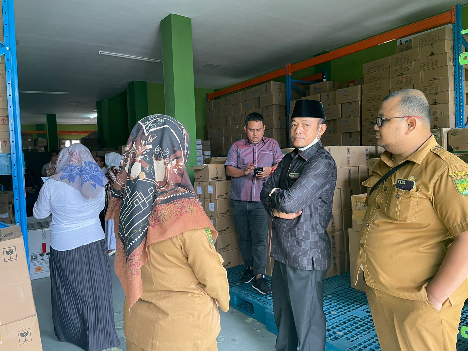 Di dalam ruang Gudang UPTD Instalasi Farmasi, Jalan Soebrantas Gang Pantai Ceria Tembilahan, Senin (10/10/2022), Samino yang didampingi Wakil Ketua Komisi IV, Muammar Armain AR mengatakan, pada tahun 2022 hingga bulan Oktober ini pendistribusian obat-obatan masih berkisar 83 persen.