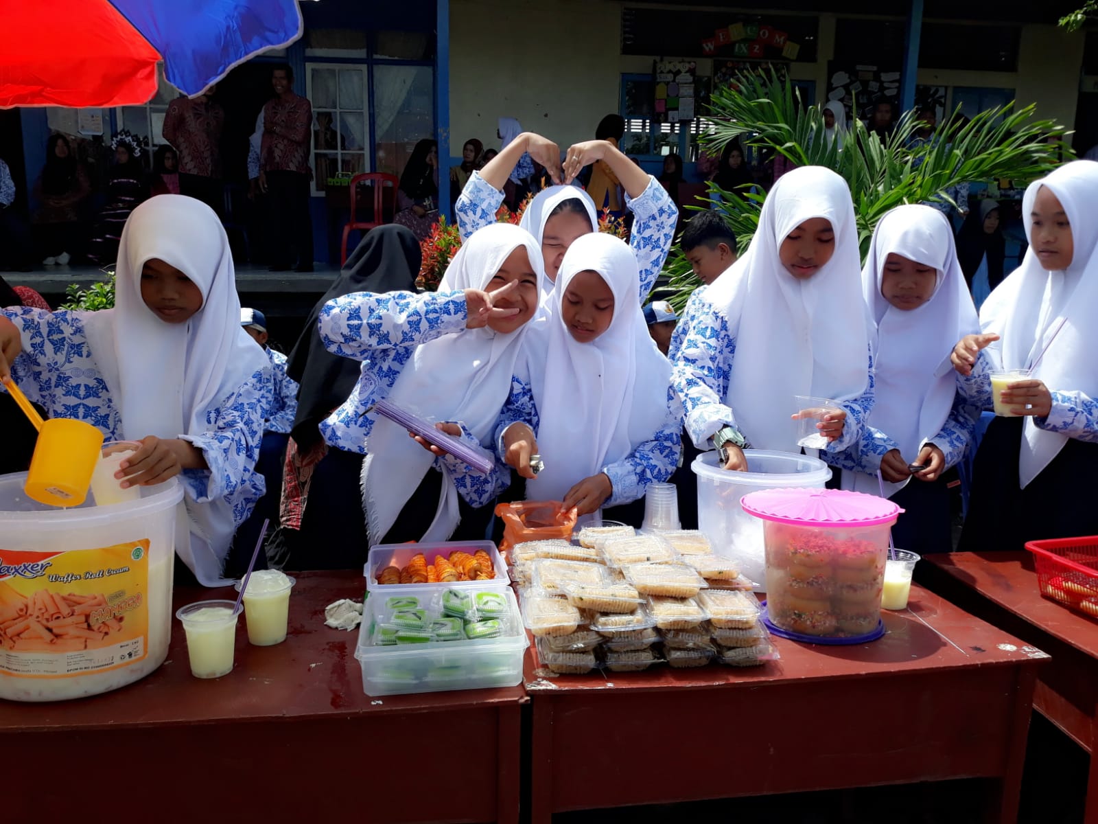 Berbagai hasil karya dan proyek siswa terlihat dalam aneka jualan dalam bazar, diantaranya adalah aneka minuman, makanan kecil, sabun cuci piring, gula merah, air nira dan olahan kelapa yang juga merupakan produk kearifan lokal.