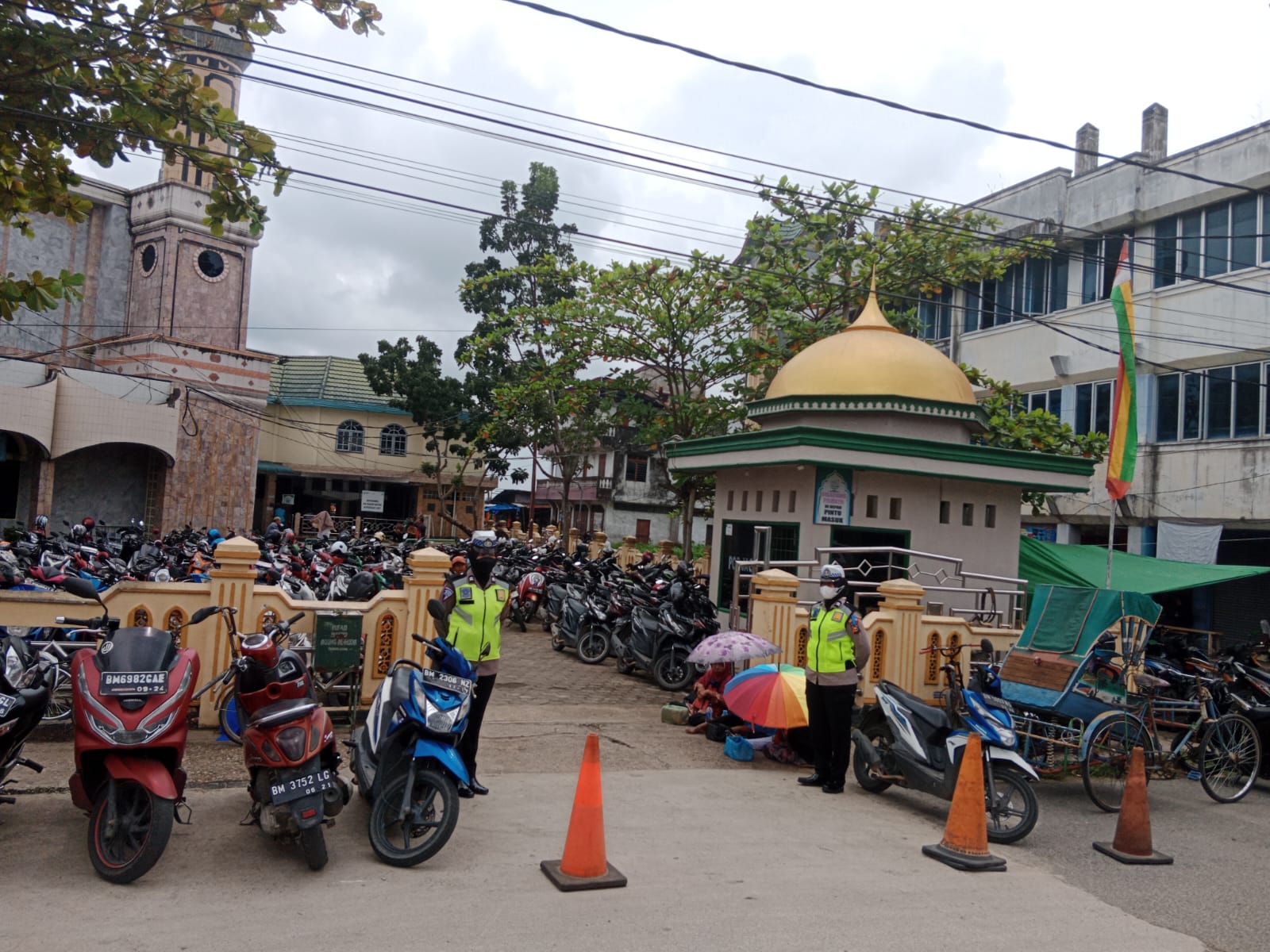 Polwan Satlantas Polres Inhil Jaga Kendaraan Jama'ah Shalat Jum'at