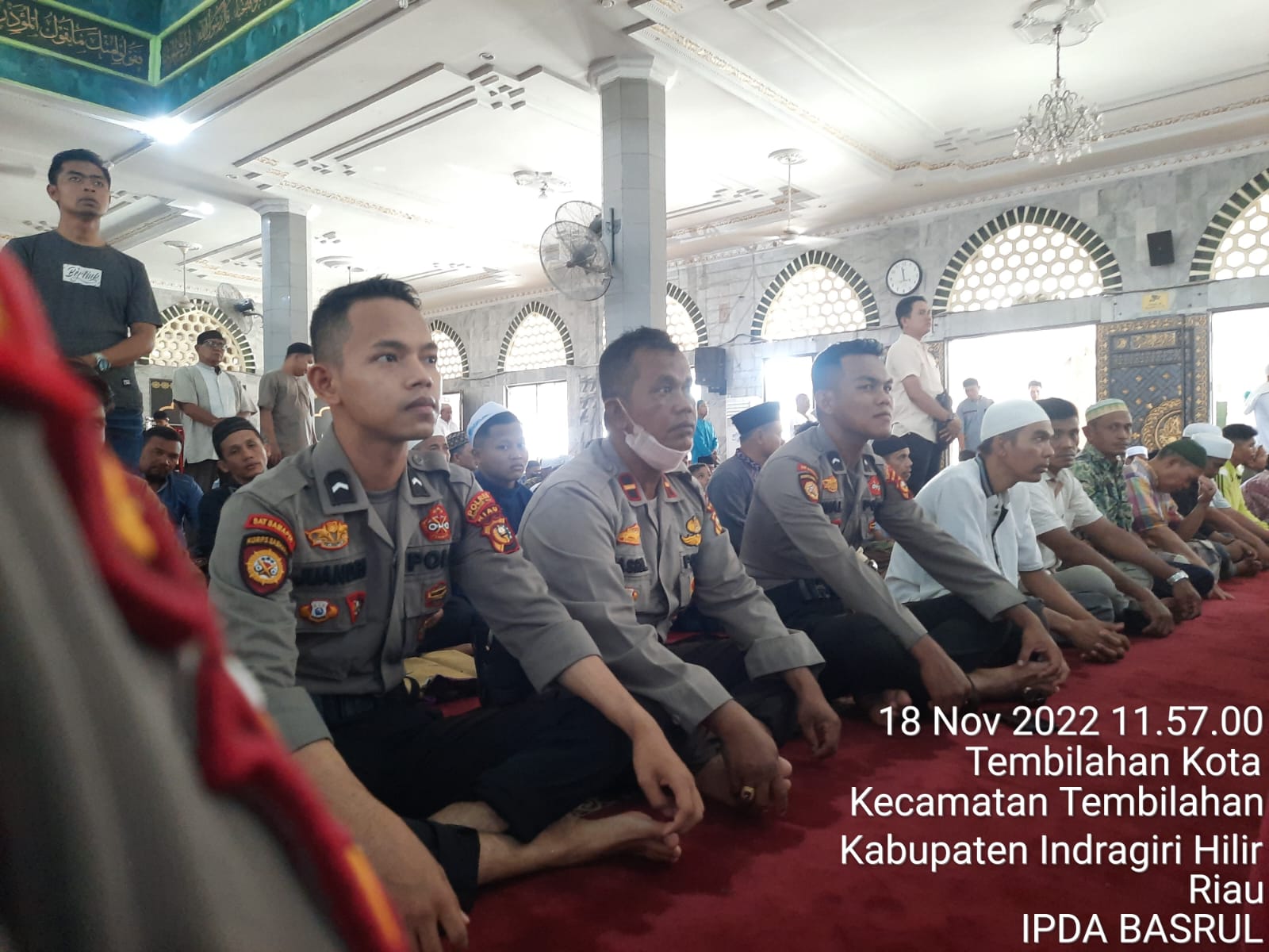 Shalat Jum'at yang dilaksanakan secara rutin dan dilakukan secara berkeliling di setiap masjid yang berbeda-beda di Kota Tembilahan ini dipimpin langsung oleh Kasat Samapta Polres Inhil AKP Kornel Sirait, SH.