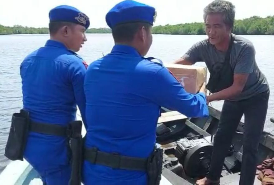 Sesuai arahan Kapolres Bengkalis, Polair Polres Bengkalis memberikan bantuan kepada masyarakat terutama nelayan yang berada di Perairan Sei Kembung, Desa Teluk Pambang, Kecamatan Bantan.
