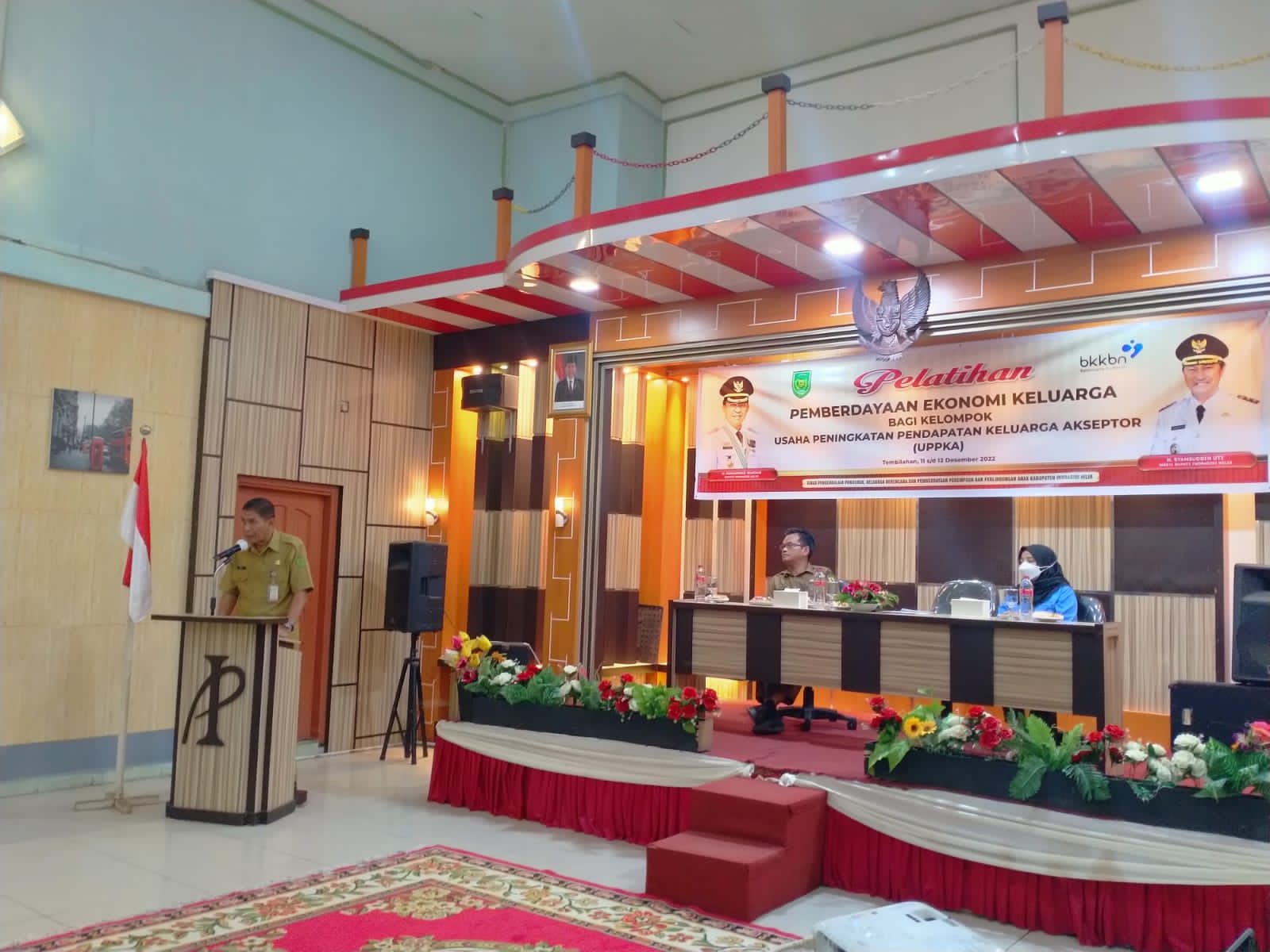 "Sebelumnya, saya ucapkan terimakasih kepada bapak ibuk peserta pelatihan yang datang dari berbagai kecamatan mengikuti pelatihan ini agar dapat meningkatkan komitmen bersama berbagai pihak untuk memposisikan program pemberdayaan ekonomi keluarga melalui kelompok Usaha Peningkatan Pendapatan Keluarga Akseptor (UPPKA),"