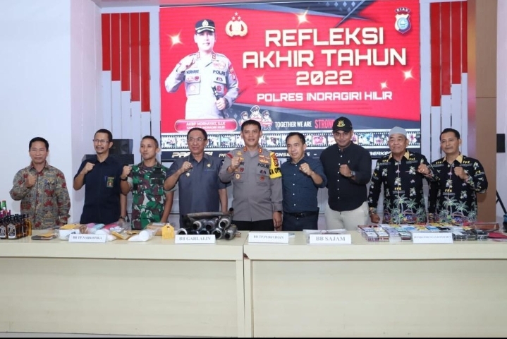 INHIL,- Dalam keterbukaan informasi publik, Polres Indragiri Hilir (Inhil), Polda Riau melaksanakan kegiatan refleksi akhir tahun 2022 dan pemusnahan barang bukti hasil Operasi Pekat Lancang Kuning.