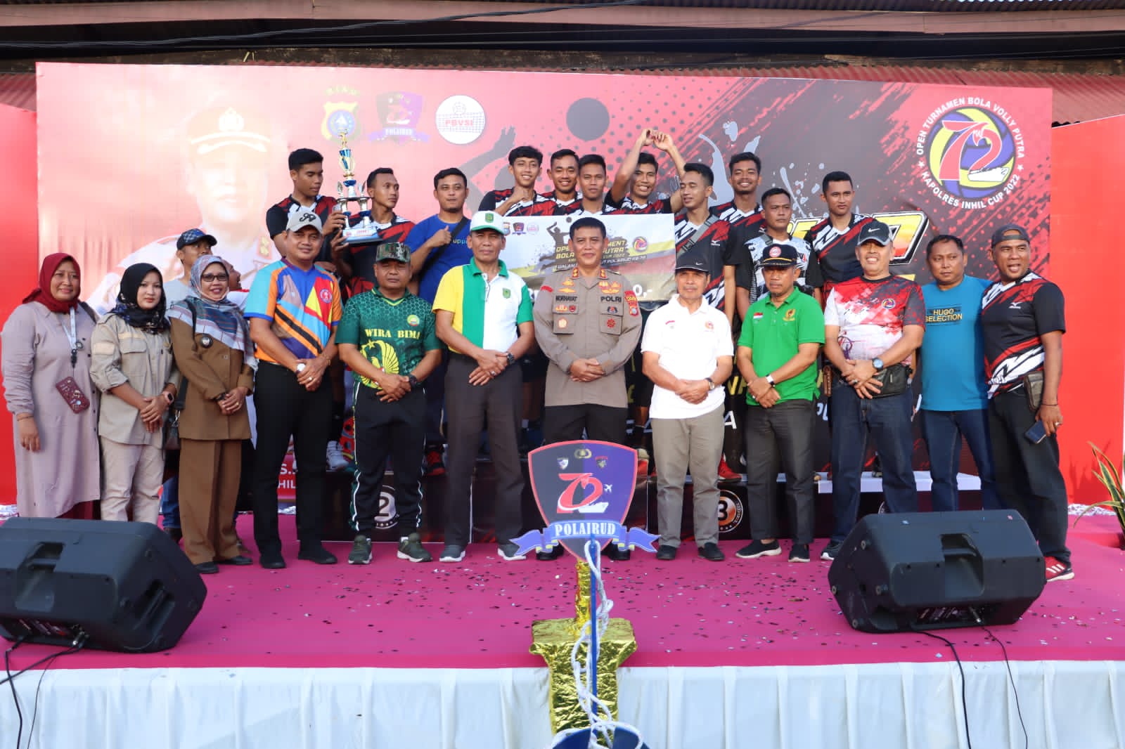 INHIL,- Tournament Bola Voli Putra Kapolres Inhil Cup Tahun 2022 dalam rangka memperingati Hut Polairud ke-72 secara resmi ditutup, Senin (19/12), di Lapangan Apel Polres Inhil.