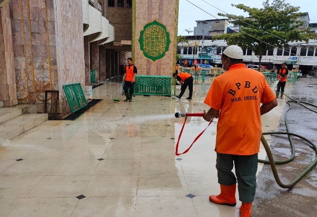 Pasca Banjir, BPBD Inhil Bersihkan Masjid