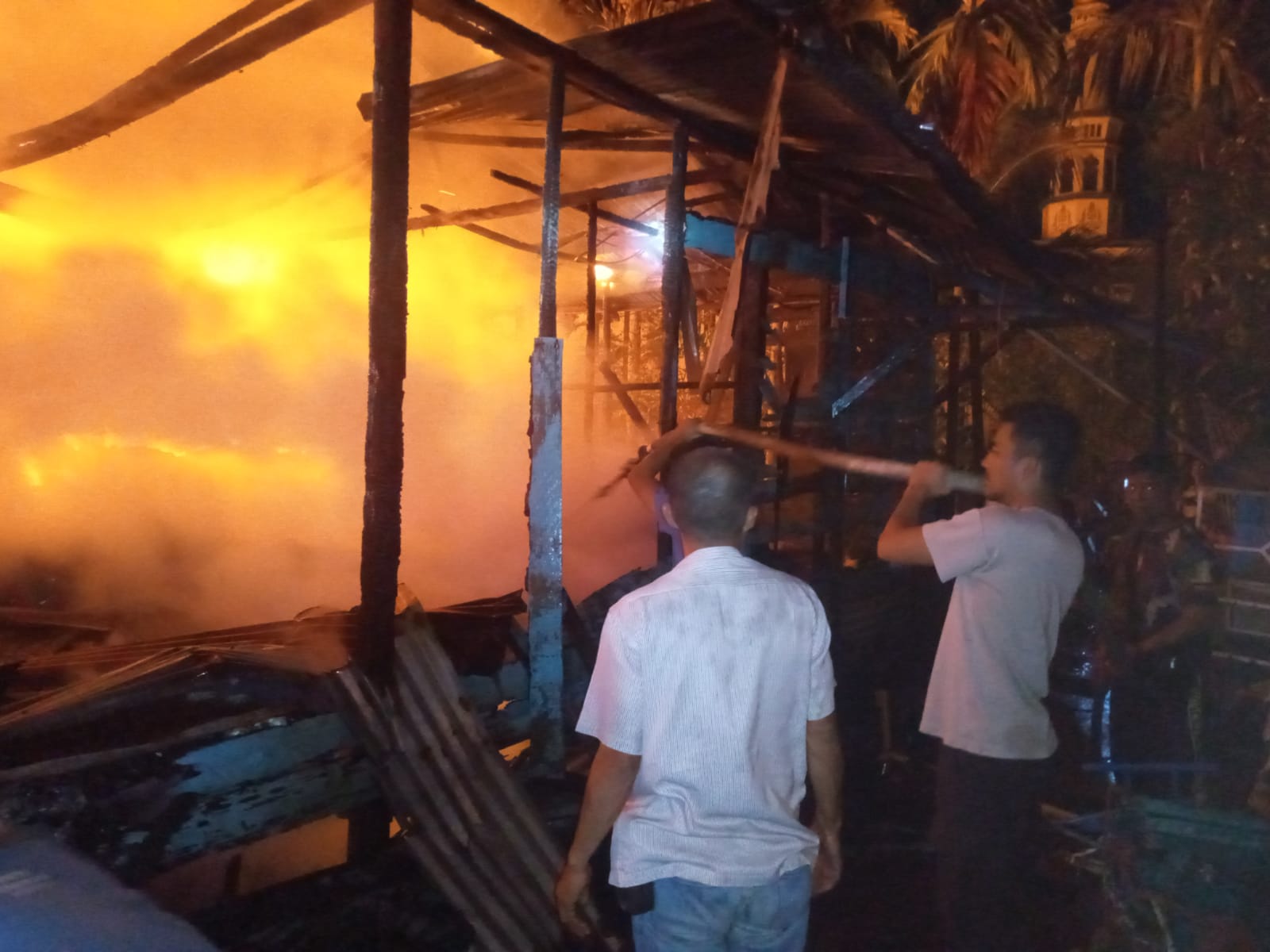 INHIL,- Sebanyak 10 unit kios di Jalan H. Abdul Manaf Kelurahan Tagaraja, Kecamatan Kateman, Kabupaten Inhil, Provinsi Riau terbakar dini hari tadi, Jum'at (10/2/2023) sekitar pukul 00:20 WIB.